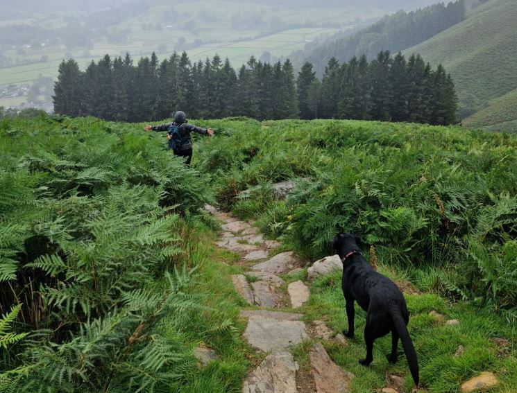 Elba, my labrador, peered down at me – ears flapping, tongue lolling – before loping out of view. Looking around for the first time in a while, I noticed vibrant green ferns carpeting the valley, the flow only interrupted by Greenhead Gill’s snaking trail. Surrendering to the elements, I opened both arms wide to catch thick droplets of rain on my face.